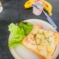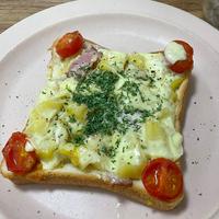間違えてマヨネーズとコンソメと胡椒をトーストの上に乗せてしまいました(- -;)
