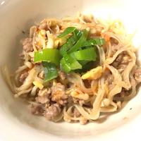 - 5 中火で熱したフライパンにごま油を入れ、豚ひき肉を炒めます。
