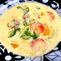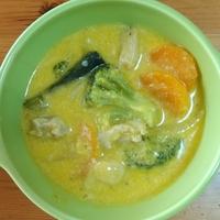 かぼちゃの自然な甘みとチーズの濃厚さが絶妙にマッチした、こっくりとしたシチューです。シチュールーがなくてもコンソメと粉チーズで代用可能で、意外と簡単に作れます。ブロッコリーを添えれば彩りも良く、クリーミーな食感が楽しめます。かぼちゃは多めに入れることで風味が増し、ジャガイモのシチューとはまた違った魅力があります。子どもたちにも大人気のメニューです。