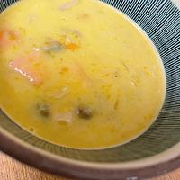 クリームシチュールーがなく、コンソメを多めに入れて粉チーズで作りました。それでもチーズで濃厚で美味しかったです。