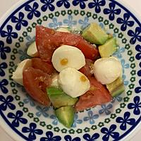 - 1 アボカドは皮をむき、1cm角に切ります。ミニトマトとプチモッツァレラチーズは半分に切ります。