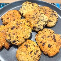 チョコナッツ&オートミールのザクザククッキーのご紹介です。おやつだけでなく朝食としても適しています。コーヒーや牛乳と一緒にどうぞ。油分としてサラダ油を加えていますが、ココナッツオイルでも美味しくできます。