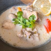 お手軽な材料でできるタイのスープ、トムカーガイのレシピのご紹介です。ココナッツミルクの甘みが鶏もも肉のうま味、ナンプラーのコクとよく合い、レモンのさわやかな酸味がおいしくてついついお箸が止まらなくなりますよ。ビールにもよく合いますのでぜひ、お試しくださいね。