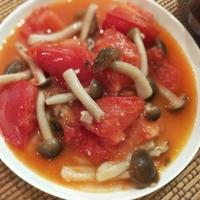 ニンニクの香りが食欲をそそる、トマトとしめじの炒め物です。火を通したトマトは甘みが増して、とてもおいしいですよ。鶏ガラスープの素の味つけで、簡単に味が調います。