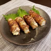お餅を豚バラとチーズで巻いて焼き上げました。味付けはシンプルに、塩こしょうのみにしています。大葉も入ることで味わいよく、お酒にもよく合います。お好みで一味唐辛子をかけてもおいしくいただけますよ。ぜひお試しくださいね。