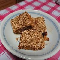 - 3 パウンド型に2を入れてならし、白いりごまをまんべんなくのせ、180℃のオーブンで20分程焼きます。