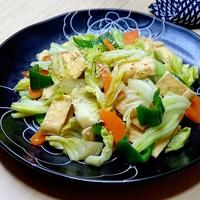 オイスターソースの味付けだけど、優しいうま味がお揚げに染みておいしいです。キャベツの大量消費にいいですね。
