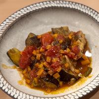 - 11 6の野菜が透き通ってきたら火から下ろし、10、アンチョビフィレを入れ、アンチョビフィレを潰し、ホールトマト缶を入れます。