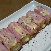 「チーズちくわのベーコンマヨ焼き」の作り方を簡単で分かりやすいレシピ動画で紹介しています。