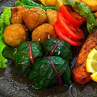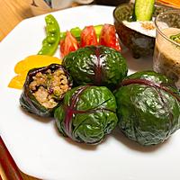 葉っぱが小さかったので一口サイズのおにぎりに。中身は塩昆布と刻み沢庵で♪ご飯にしっかり味をつけた方が美味しく感じられそうです。