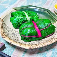 塩加減は、お好みで調整してください。 スイスチャードの葉の裏側の部分が表にくるように包むと、軸の色が綺麗に見えやすくなります。 スイスチャードはさっと湯通しする程度にしてください。ゆで時間が長いと食感や色味が悪くなるので、ご注意ください。
