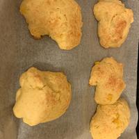 砂糖不使用のホケミ粉を入手しました。早速おかず系に挑戦!味は塩分濃いめで食感としてはスコーンだったかなと思います。