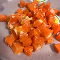 案外美味しかったです。600wで1分だとまだ少しシャキシャキ感が残っていたので、もう少し加熱しても良いかなと思いました。ただ、レンジで調理できるのは有り難いです。にんじん特有の甘みがあまり得意ではないので、粉チーズは多めにふりかけました。
