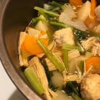 冷蔵庫に余ってたつくねを入れて和風スープにアレンジ。