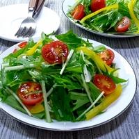 レシピ通りに作ってみました。美味しかったですが、もう少しずつドレッシングの材料は多くした方が良い気がしました。水菜が多くてドレッシングが混ざりきらない感じです。