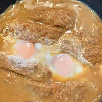 - 8 ひと煮立ちしたら6、2、3を入れ中央に卵を入れ蓋をして中火で3分程度煮込んで卵が半熟状態になったら出来上がりです。
