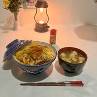 具材はチキンカツ、卵、玉ねぎで。味噌は合わせ味噌。