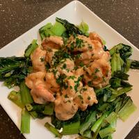 海老は生海老を使いました。ブロッコリーはレンジで加熱調理して、海老をフライパンで調理した後、調味料と合わせました。美味しくいただきました。