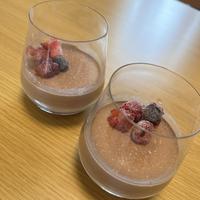 しっとり濃厚なチョコプリンのご紹介です。生クリームの濃厚なコクとチョコレートの甘さのバランスが絶妙な一品です。今回はいちごをトッピングしましたが、お好みで季節の果物をトッピングして楽しんでくださいね。