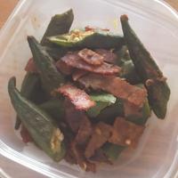 オクラをカレー風味で炒めたスパイシーな一品はいかがでしょうか。ベーコンが入って、味もしっかり付いているので、お弁当のおかずにもぴったりです。ささっと作れるので、あと一品欲しい時にぜひ作ってみてください。
