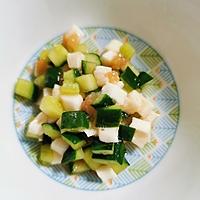 - 1 長芋を1cm角に切ります。きゅうりを1cm角に切ります。