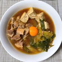 - 5 具材に火が通ったら器に盛り、卵黄をトッピングして完成です。