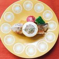 - 8 器に4、6を盛り付け、7をかけます。レモンをのせ、パセリを散らして完成です。