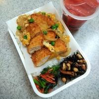 前日にチキンカツを作った残りで、お弁当用に親子カツ丼にしました!