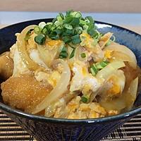 チキンカツで作った、親子カツ丼のレシピのご紹介です。めんつゆと昆布茶で簡単な味付けですが、出汁が効いた美味しい一品になっています。今回は鶏もも肉を使用していますが、鶏むね肉でも代用可能ですので、是非お試しください。