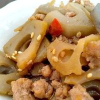 レンコンとひき肉のピリ辛バターきんぴら レシピ・作り方