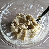 - 1 じゃがいもは芽を取り皮を剥いて8等分に切り分け、耐熱ボウルに入れてラップをし、600Wの電子レンジで5分加熱します。熱いうちに、フォークなどで潰します。