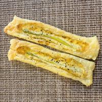 アスパラを丸ごと乗せて焼き上げる、お手軽スティックパイのご紹介です。タルタルソースに加えたベーコンから旨味がたっぷりと出て、ジューシーな仕上がりになりますよ。ゆで卵も入れて、しっかりボリュームもあります。パーティーやおもてなしにもいかがでしょうか。