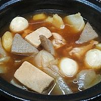 - 6 鍋にだし汁の材料を入れ、中火で熱し沸騰したら1、2、3、4、ゆで卵を入れ、再沸騰したら弱火にし、蓋をして20分ほど煮込みます。