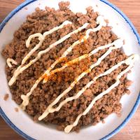 ささっと簡単にできる丼のご紹介です。ごま油の香ばしさが食欲をそそり、甘辛いそぼろは、ごはんとの相性が抜群です。マヨネーズでマイルドな味になり、一味唐辛子の辛味が加わり、箸が進みます。ぜひお試しくださいね。