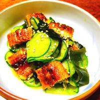 完成して思ったのですが、つまりはワカメときゅうりの酢の物に鰻をトッピングした感じでした。