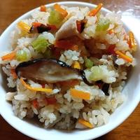 ふき香る、具だくさんの混ぜごはんはいかがですか。シャキシャキとした香りの良いふきと、鶏もも肉としいたけの旨味が合わさり、とってもおいしい混ぜごはんですよ。最後にふきを混ぜるので、より香りが引き立ちます。ぜひお試しください。