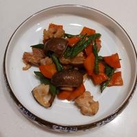 さやいんげん、にんじんの代わりに、玉ねぎ1/2個くし切り、しいたけ2個スライス、エノキ適量で作りました。すき焼きみたいに甘くてご飯がススム味付けでした。長ネギや木綿豆腐も合いそう。次回はレシピ通りのお野菜にもチャレンジしてみたいと思います。