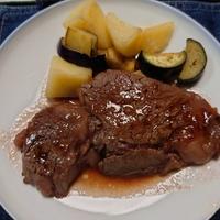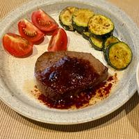 濃厚なお肉に赤ワインソース。おいしかったです。牛脂の代わりにオリーブオイル使いました。