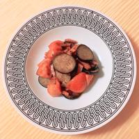 - 8 皿に盛り付け、バジルをかけて出来上がりです。