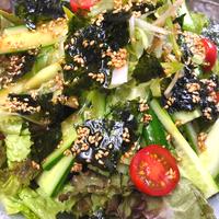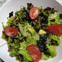 アボカド1・長葱なし・ごま油小2・ジャバン海苔使用。食べにくかったゴワついたレタスがドレッシングと馴染んで食べやすい✏️