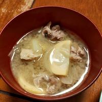 - 4 豚肉の色が変わったらみそを溶かし、軽く溶いた卵をゆっくりと流し入れてひと煮立ちさせ、火を止めます。お椀に盛り付け、小ねぎをかけて完成です。