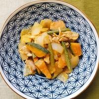 ニンニクの芽の代わりにいんげん、豚バラを豚もも肉にして作りました。かぼちゃがほくほくで玉ねぎの甘味や豚肉の旨味が引き立つ美味しさでした。