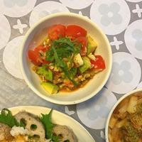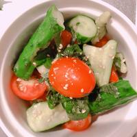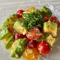 追記:アボカド1個、プチトマト10個、ミョウガなし、大葉5枚、うちのポン酢醤油を同量、塩少々がお気に入り!