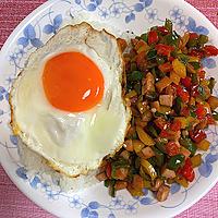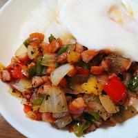 ウインナーを鶏ひき肉に代えるとガパオライスになります。 ピーマンと赤パプリカは、玉ねぎやもやしなど、お好きな野菜でも代用可能です。ご高齢の方や、2才以下の乳幼児、妊娠中の女性、免疫機能が低下している方は、卵の生食を避けてください。