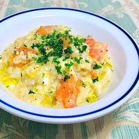 レンジで手軽に作れるのに、白だしとトマトの組み合わせが絶妙な一品です。オリーブオイルを加えることで香り高い仕上がりに。マッシュルームや玉ねぎ、キノコなどを追加したり、仕上げにバジルや粉チーズをかけたりと、リゾット風にアレンジを楽しめます。朝食にぴったりのさっぱりとした味わいで、寒い日の体も温まりますよ。