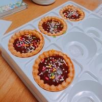 丁寧に作るととろ〜りとした食感のチョコレートが特徴的な、見た目も可愛らしいタルトに仕上がります。アーモンドやカラフルシュガー、いちごチョコなど、好みのトッピングで華やかにアレンジ可能。サクサクのクッキー生地との食感の違いを楽しめ、冷やすとアイスのような食感に変化するのも魅力です。湯煎で温めることで、より滑らかな口当たりになるポイントも。