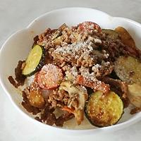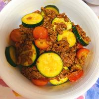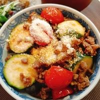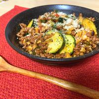 ズッキーニとひき肉のカレー炒め丼 レシピ・作り方