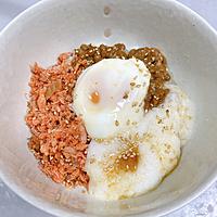 温玉失敗しましたが美味しかったです。鮭フレークの塩気と旨味が全体をまとめてくれました。