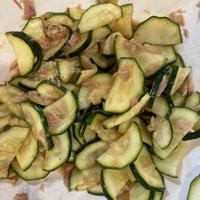 ズッキーニから後で余分な水分が出てこないようにきゅうりと同様に先に塩もみを必ずしてください。 カロリーをカットするために、ツナ缶の油は使っていません。 ツナ缶の代わりに茹でたささみを割いたものをお使いいただいてもいいかと思います^^