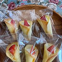 まるで花束のような見た目が可愛らしい、いちごのブーケラングドシャです。サクサクのクッキーにたっぷりのホイップクリームといちごがよく合い、おいしいですよ。意外と簡単に作れるので、ぜひ作ってみてくださいね。